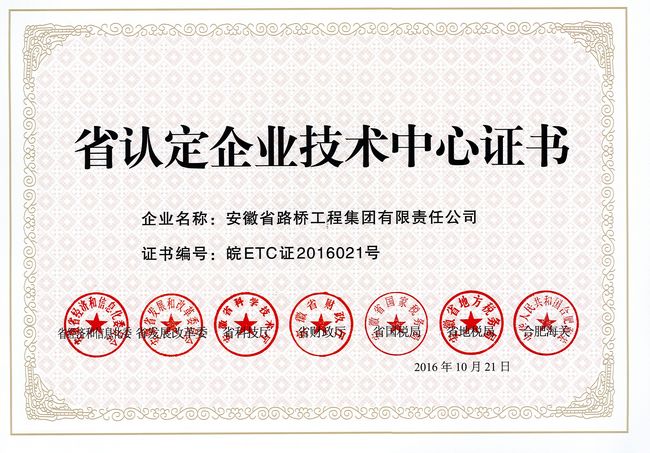 省級(jí)技術(shù)中心認(rèn)定證書(shū)
