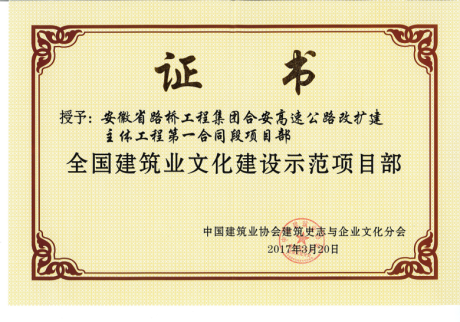 近日,由公司承建的合安高速改擴(kuò)建主體工程第一合同段項(xiàng)目榮獲首批“全國建筑業(yè)文化建設(shè)示范項(xiàng)目部”稱號(hào)。該獎(jiǎng)項(xiàng)是由中國建筑業(yè)協(xié)會(huì)、中建協(xié)建筑史志與企業(yè)文化分會(huì)共同評(píng)選頒發(fā),首批共授予55個(gè)項(xiàng)目“全國建筑業(yè)文化建設(shè)示范項(xiàng)目部”稱號(hào)。