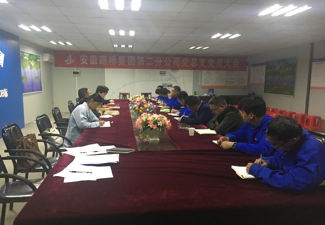 在公司順利完成頂層設(shè)計之際,第二分公司各項籌備工作有序開展,2017年11月9日晚,中共安徽省路橋工程集團有限責(zé)任公司第二分公司總支部委員會首次黨員大會在池州大橋接線08標(biāo)項目部召開。公司黨委委員、副總經(jīng)理錢葉琳、公司黨委工作與人力資源部副主任徐慧玲、公司紀檢監(jiān)察室監(jiān)察員宋暢同志應(yīng)邀出席會議,會議由第二分公司黨總支籌備負責(zé)人蔡昊同志主持。