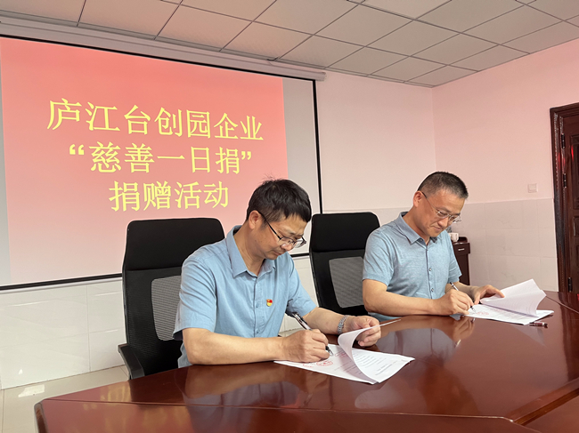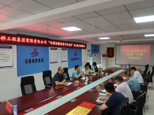 捐贈儀式上,王升副會長向與會人員介紹了此次募捐活動的由來及目的,詳細(xì)講述了廬江縣實施“一米陽光”助殘、“薪火相傳”助學(xué)、“鄰里守望”互助等三大社會幫扶工程的初衷和使命,并對公司的捐贈善舉表示感謝。隨后,干戈副書記與王升副會長簽訂關(guān)于設(shè)立“安徽路橋集團鞏固拓展脫貧攻堅成果三大工程基金”的協(xié)議,廬江臺創(chuàng)園管委會工會主席張波頒發(fā)捐贈證書。