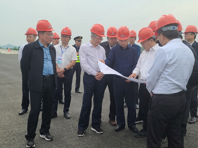 聶愛國(guó)一行深入施工現(xiàn)場(chǎng),詳細(xì)了解了來(lái)六高速規(guī)劃及建設(shè)情況和安徽建工建設(shè)投資集團(tuán)概況,認(rèn)真聽取了項(xiàng)目負(fù)責(zé)人關(guān)于當(dāng)前項(xiàng)目進(jìn)展、質(zhì)量安全等方面的匯報(bào)。