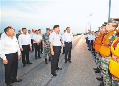 大堤上,習近平親切看望慰問了在防汛抗洪救災(zāi)斗爭中犧牲同志的家屬、防汛抗洪一線人員、先進典型代表和參加抗洪搶險的部隊官兵,并向全國奮戰(zhàn)在防汛抗洪救災(zāi)一線的同志們表示誠摯的問候。他強調(diào),今年入汛以來,南北方江河湖泊接連出現(xiàn)超警戒水位險情。廣大干部群眾和人民解放軍、武警官兵堅決響應(yīng)黨和政府號召,發(fā)揚不怕累苦、不怕疲勞、不怕犧牲的精神斗志,堅守在防汛抗洪救災(zāi)第一線,涌現(xiàn)了許多先進典型和感人事跡,展現(xiàn)了中國人民眾志成城、頑強拼搏、敢于勝利的英雄氣概,書寫了洪水無情人有情的人間大愛。黨和人民感謝你們!
