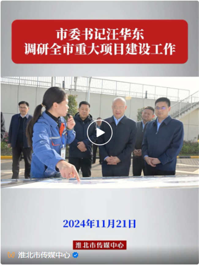 11月21日上午,淮北市市委書記汪華東前往淮北市高鐵西站綜合開發(fā)項目,調(diào)研重大項目建設(shè)工作,市委主要領(lǐng)導(dǎo)汪繼宏、黃韡、徐勝利陪同參加。