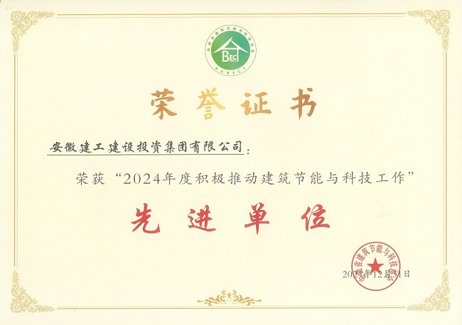 近日,建工建投集團喜獲安徽省建筑節(jié)能與科技協會頒發(fā)的“2024年度積極推動建筑節(jié)能與科技工作先進單位”稱號。