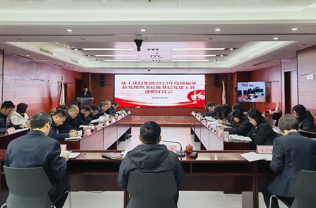 1月22日下午,建工建投集團黨委召開2023年度所屬單位黨組織書記抓基層黨建工作述職評議會。公司黨委書記、董事長任杰出席會議,黨委副書記、工會主席干戈主持會議。公司黨委委員、紀(jì)委書記王學(xué)梅,機關(guān)有關(guān)部門負(fù)責(zé)人,所屬單位黨組織書記、黨群部門負(fù)責(zé)人參加會議。