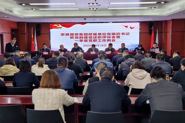 3月18日,安徽路橋集團黨委召開2021年度所屬單位黨組織書記抓黨建述職評議會暨一季度黨群工作例會。黨委書記、董事長盛明宏出席會議,黨委副書記干戈傳達(dá)建工控股黨委副書記、工會主席牛曙東信訪穩(wěn)定工作講話精神,黨委委員、副總經(jīng)理、總工程師陳莘主持會議。