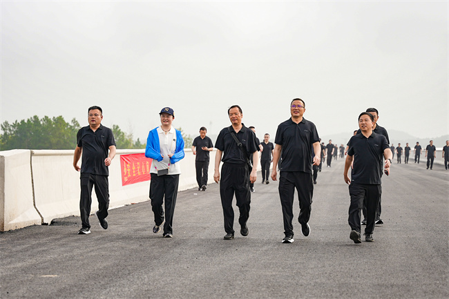 胡晨在講話中強(qiáng)調(diào),涇青高速作為安徽省“五縱十橫”高速公路網(wǎng)的重要組成部分,既是串聯(lián)區(qū)域交通的“動(dòng)脈線”,更是推動(dòng)地方經(jīng)濟(jì)發(fā)展、改善民生福祉的“希望路”。他高度認(rèn)可建工建投集團(tuán)在項(xiàng)目建設(shè)中展現(xiàn)的責(zé)任擔(dān)當(dāng)與專業(yè)實(shí)力,寄語(yǔ)全體建設(shè)者以此次健步走活動(dòng)為契機(jī),將徒步中迸發(fā)的活力、毅力轉(zhuǎn)化為工作干勁,全力推進(jìn)項(xiàng)目建設(shè),確保這條連接“詩(shī)意山水”與“發(fā)展機(jī)遇”的通道早日通車、惠及百姓。