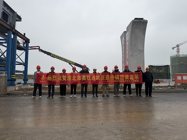 近日,隨著一臺(tái)350噸級(jí)汽車吊將重達(dá)82.3噸的鋼箱梁精準(zhǔn)吊裝至指定位置,建工建投集團(tuán)淮北市高鐵西站綜合開發(fā)項(xiàng)目匝道橋鋼箱梁首吊作業(yè)圓滿完成。